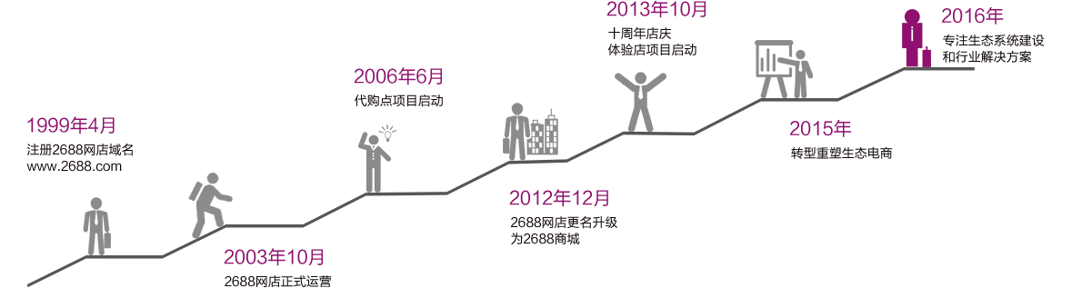 2688公司具有13年电商史,10年线下门店合作运营管理经验,首创"代购点"合作模式覆盖全国近3000个县市,交易用户累计超过400万。2015年,公司围绕注册商标"芝麻开门"启动了全新品牌的2688生态系统建设发展工程,将逐步在电商、媒体、教育、金融等多领域开展深度的资源整合,与合作伙伴、广大用户实现全面共赢。